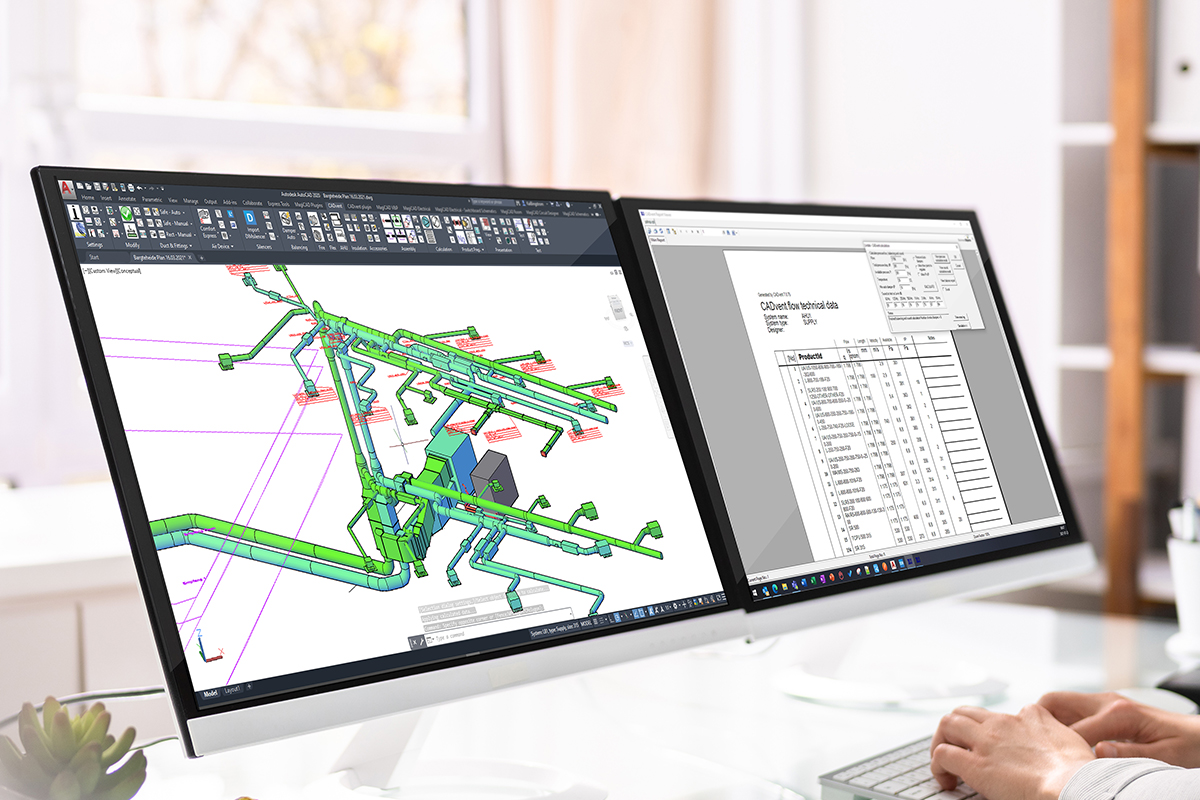 CADvent integriert Konstruktion, Berechnung, Dimensionierung, Produktwahl und Dokumentation als Gesamtkonzept, sodass künftig die tägliche Arbeit bei der Projektierung selbst großer und komplizierter Lüftungsanlagen erleichtert wird.