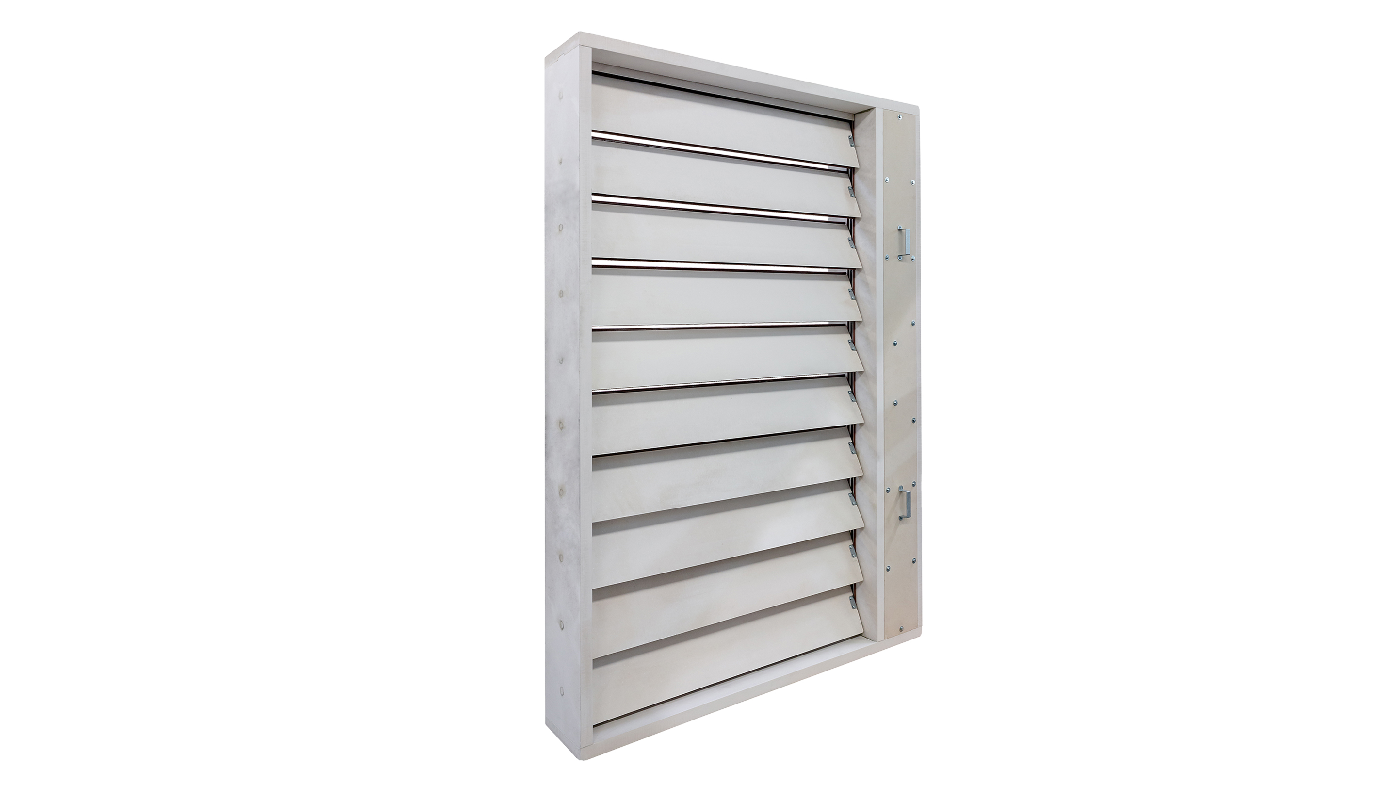 Rechteckige Entrauchungsklappe SDJR-M für Rauch- und Wärmeabzugssysteme in Mehrbereichsabschnitten. Das Gehäuse, sowie auch die Klappenlamellen bestehen aus Kalzium-Silikat-Platten entsprechend der Chemikalienklasse 4. Im Brandfall werden Rauch und Wärme durch das gesamte Rauchabzugssystem abgeführt und diese Klappe ist so ausgelegt, dass sie je nach Szenario entweder geöffnet oder geschlossen bleibt, um Rauch und Wärme aus dem Gebäude ableiten zu können. Diese Klappe ist mit einem Stellantrieb für 24V oder 230V ausgestattet und kann als automatische (AA) oder als manuell (MA) betätigte Klappe verwendet werden. Diese Klappe ist CE-gekennzeichnet und zertifiziert nach EN12101-8, geprüft nach EN1366-10 und klassifiziert nach EN13501-4. Die Klappe ist geeignet für den vertikalen und horizontalen Einbau in Rauchgasabzugsanlagen für Mehrbereichsabschnitte nach EN1366-8 mit Rauchaustrittsklasse S bei 1000Pa Unterdruck.