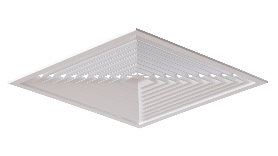Er enthält eine Einbautraverse für die einfache Befestigung eines quadratischen Lindab-Deckenauslasses vom Typ 4WaySS.