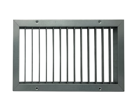 Gitter mit vertikalen Lamellen für Montage direkt in den Lindab FireProtect Entrauchungskanal. Das Gitter wird aus verzinktem Stahlblech ohne Schweißvorgänge gefertigt und bietet daher keinen Ansatz für Korrosion.