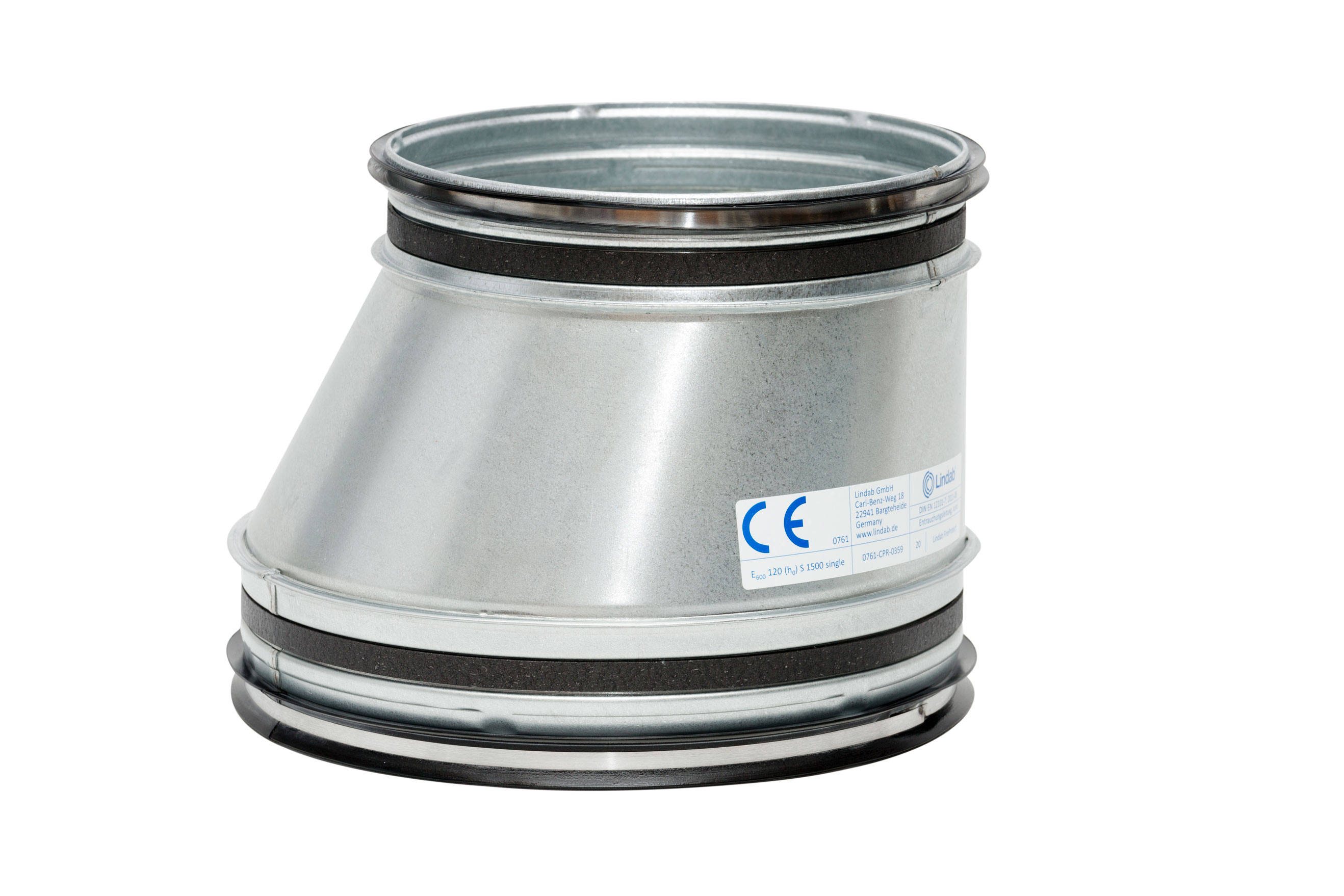 Mit einem nicht ablösbaren Aufkleber als Entrauchungsleitung gekennzeichnet. Das Gesamtsystem ist mit der Leistungsbeständigkeit 0761-CPR-0359 ausgestattet. Zugelassen für 600° C für 120 Minuten nach DIN EN 12101-7.