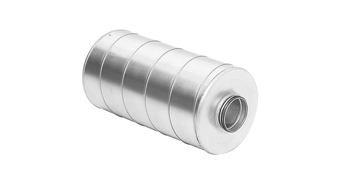Der SLUSS 100 ist ein runder, gerader Schalldämpfer mit einem Anschlussdurchmesser von 100 bis 400 mm.