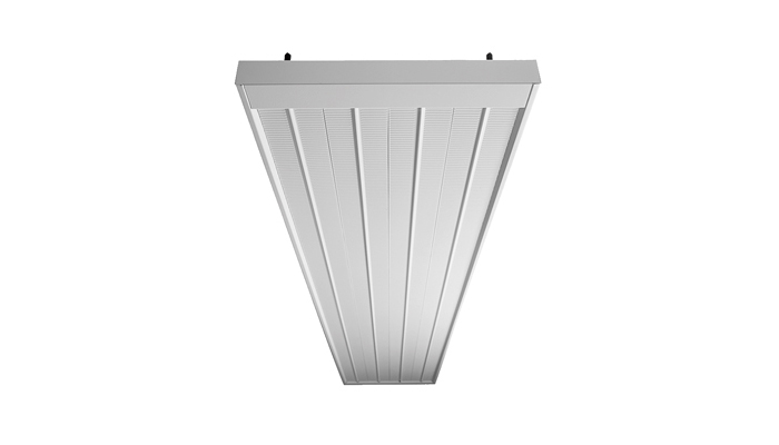 Atrium-H ist ein Heizpaneel. Es ist mit Endkappen ausgestattet und kann in eine Zwischendecke integriert werden.