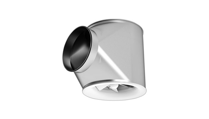 Der RCWB ist ein verstellbarer Dralldurchlass mit integriertem Anschlusskasten, speziell geeignet bei großen Deckenhöhen.