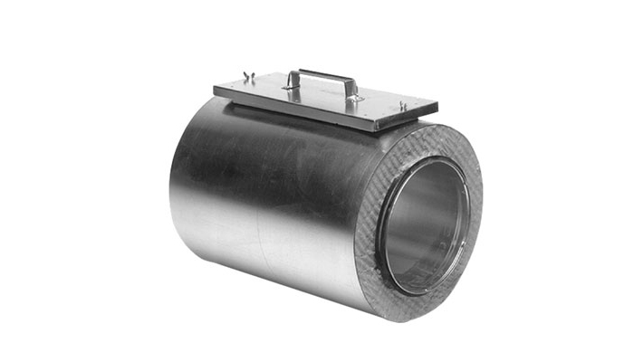 Revisionsstück, bestehend aus Doppelmantelrohr mit zwischenliegender Isolierung und einem isoliertem Deckel für Inspektion und Reinigung. Das Revisionsstück kann direkt mit isolierten Rohren SRI verbunden werden.