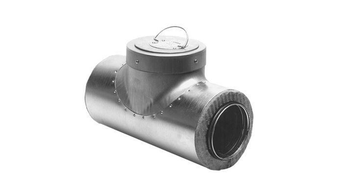 Revisionsstück als isoliertes T-Stück mit Abdeckkappe für Isolierung zwischen innerem und äußerem T-Stück sowie isoliertem Inspektionsdeckel (ESHIU). Der Inspektionsdeckel ist gesondert zu bestellen.