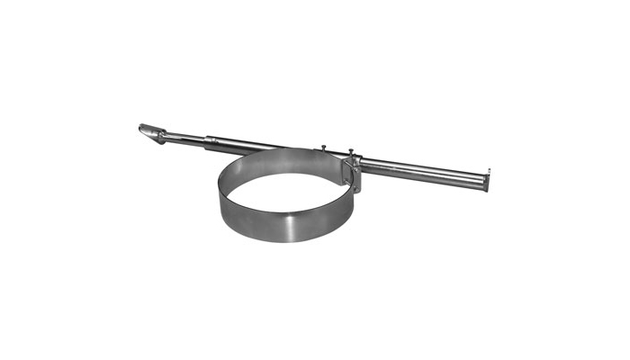 Aus galvanisch verzinktem Rohrprofil mit Rohrschelle in 2 mm Blech. Winkel zur Befestigung an Dachbalken aus 4 mm Platten mit 8 mm Löchern.