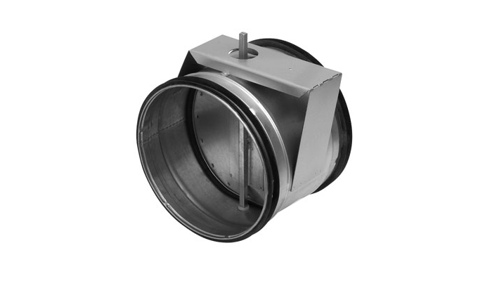 Die Klappe hat weder den Isolierabstandshalter noch einen Stellhebel. Die längere Achse ist vorgesehen für die bauseitige Montage von Motoren.