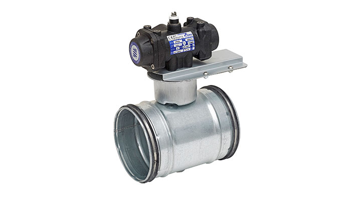 Bestehend aus einer Absperrklappe DTU mit montiertem pneumatischem Zylinder.