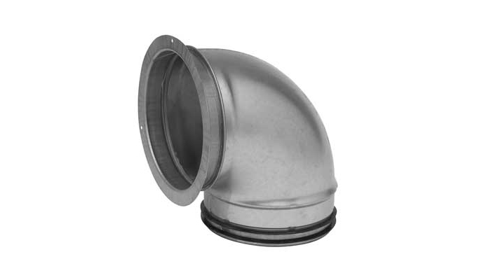 Bogen gepresst, kurze Baulänge mit Muffe und vorgelochtem Flansch für Nagelbefestigung.