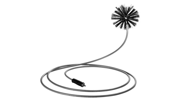 Biegewelle 10 m lang, Set mit einem 18 cm Ø Perlon-Bürstenkopf, für die Reinigung von Rundrohrsystemen ab NW 80 mm (Borsten ggfs. mit Schere kürzen) mit Bögen nicht kleiner wie R=D.