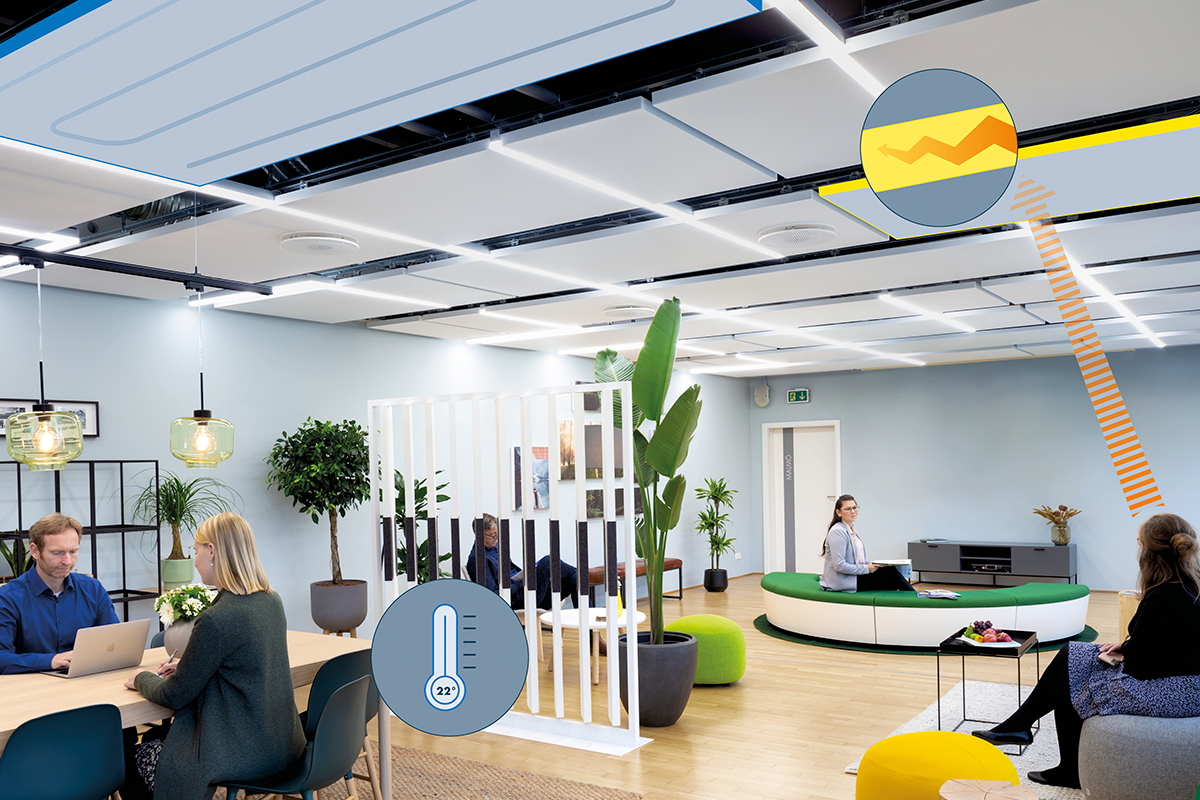 Kühl- und Heizsysteme unter der Decke und die Raumakustik sind essenziell für ein gesundes Innenraumklima, und damit für das Wohlbefinden und die Leistungsfähigkeit der Menschen im Raum.