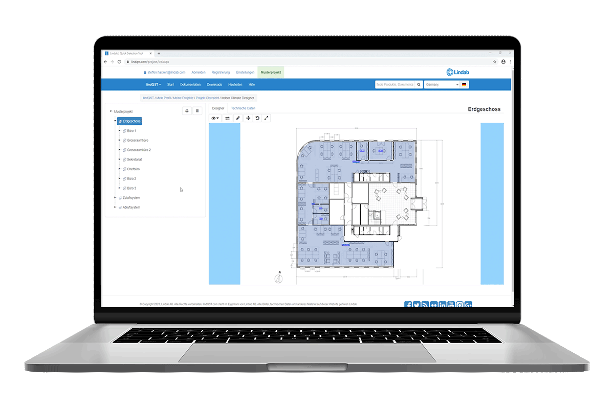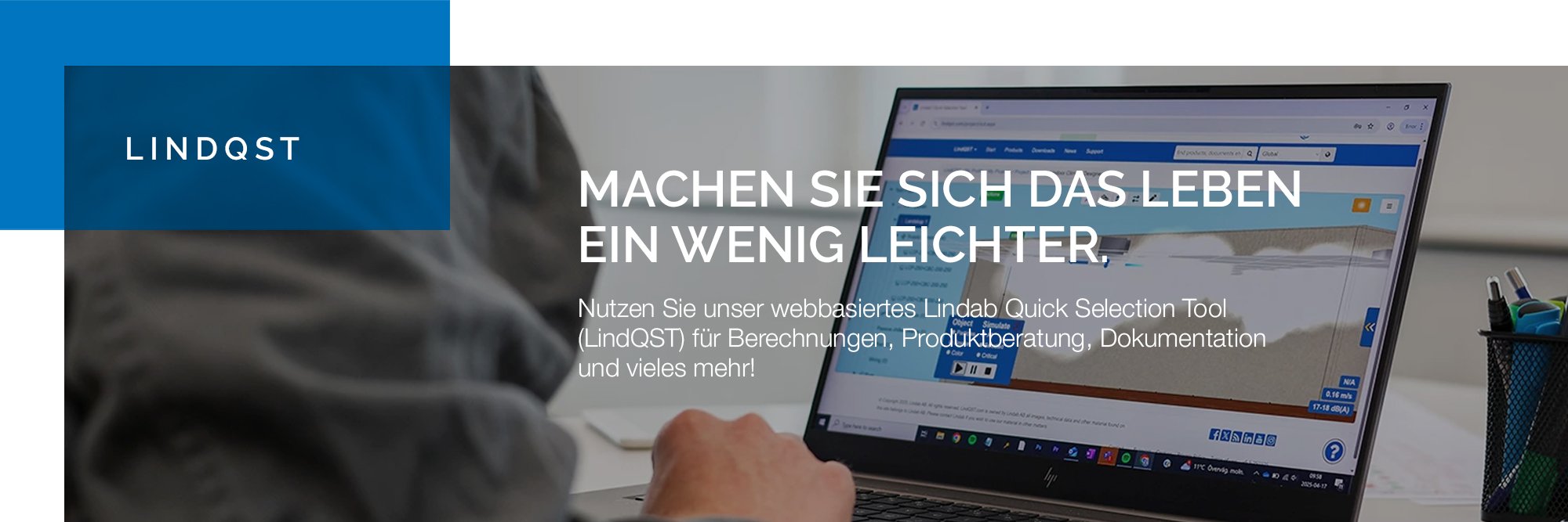 Mit LindQST treffen Sie jederzeit die richtige Entscheidung – von Luft- und Wasserprodukten über Schalldämpfer bis hin zu Brandschutzklappen. Greifen Sie mit nur wenigen Klicks auf aktuelle Dokumentationen zu und erstellen Sie mühelos Auslegungen nach Ihren Projektanforderungen.